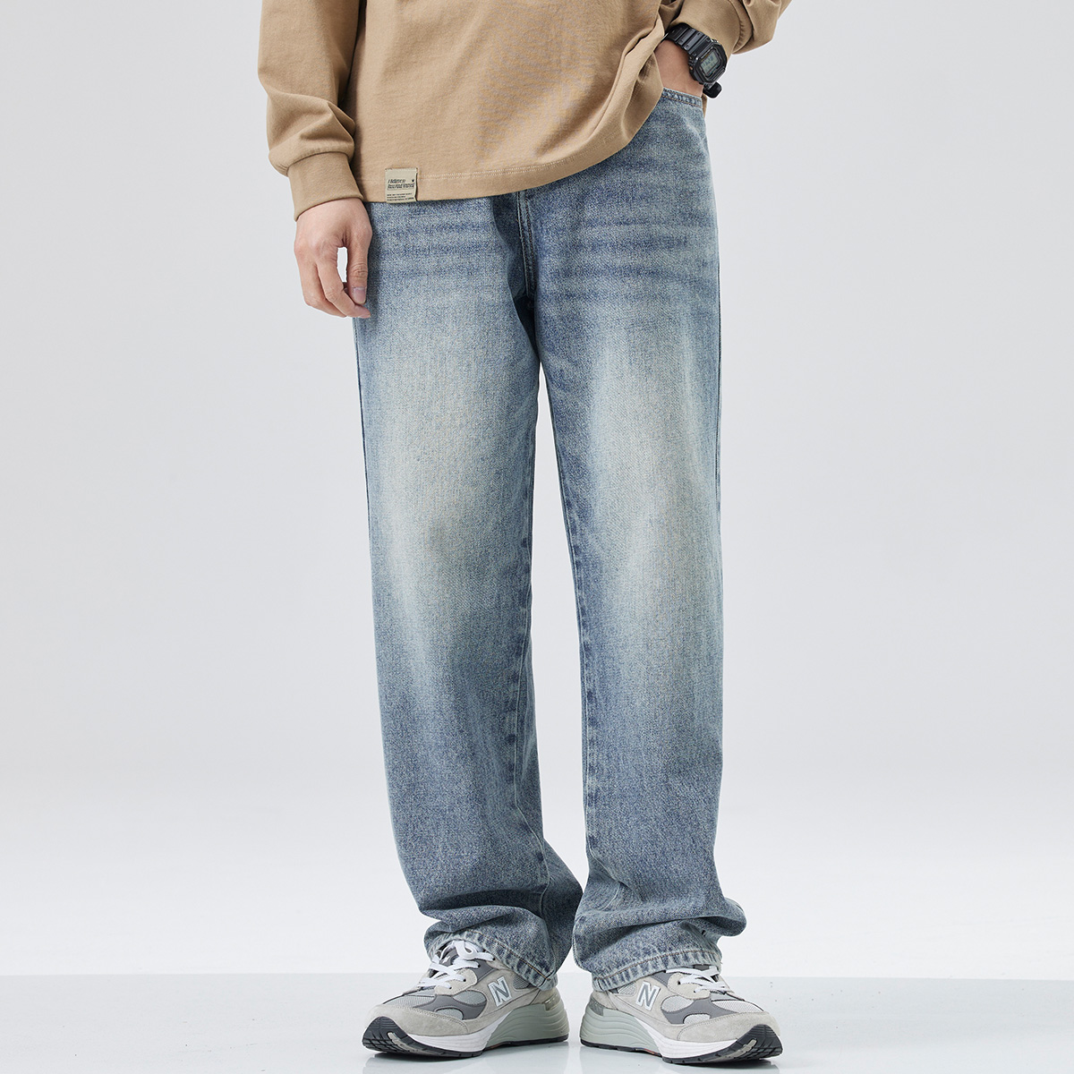 复古水洗长裤 hansca阔腿牛仔裤 潮牌休闲美式 新款 子 男直筒宽松春季