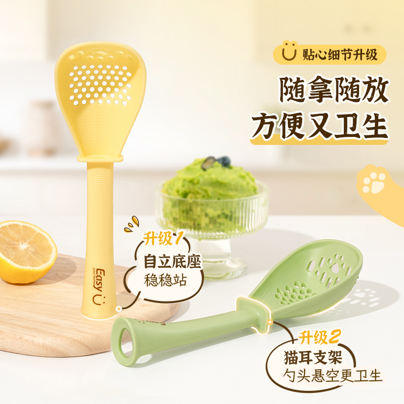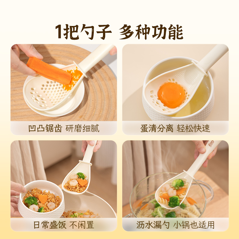 易优家多功能料理勺宝宝漏勺辅食工具食品级沥水勺辅食泥研磨捞勺