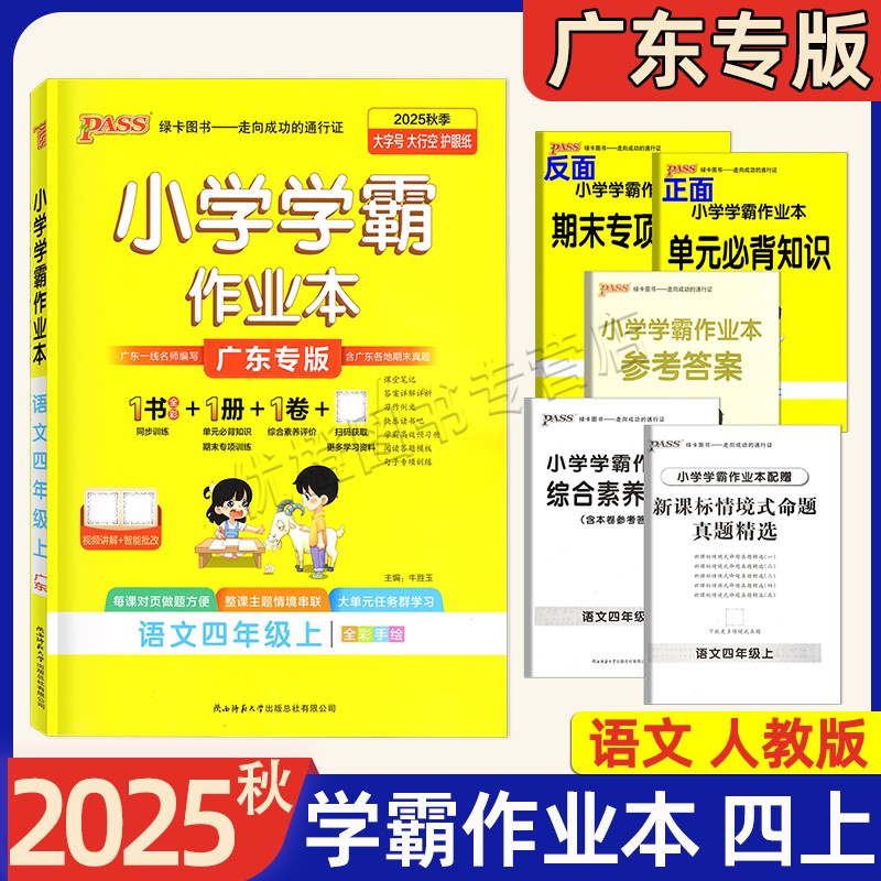 语文英语数学科学道法人教RJ北师BS教科JK版 小学学霸作业本四年级上册 2025秋新版 小学4上同步训练达标试卷一课一练 广东专版