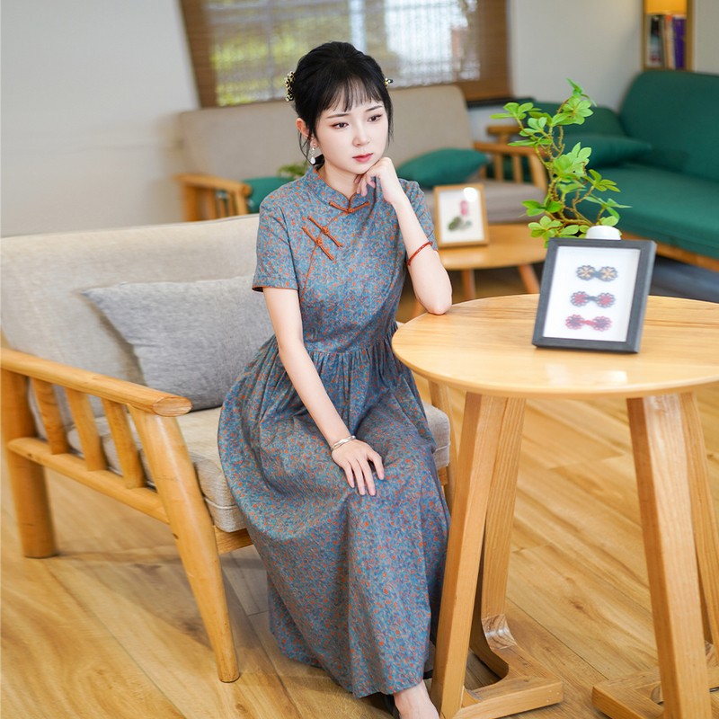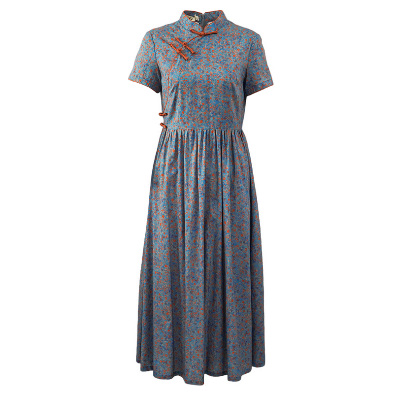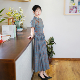 长裙盘扣裙子女夏 人丝亚麻连衣裙改良旗袍新中式 JKJS 月芙蕖