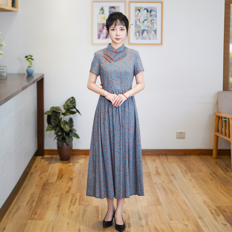 连衣裙牛奶丝 淡蓝色少女年轻款 新中式 旗袍日常素雅2025春夏新款
