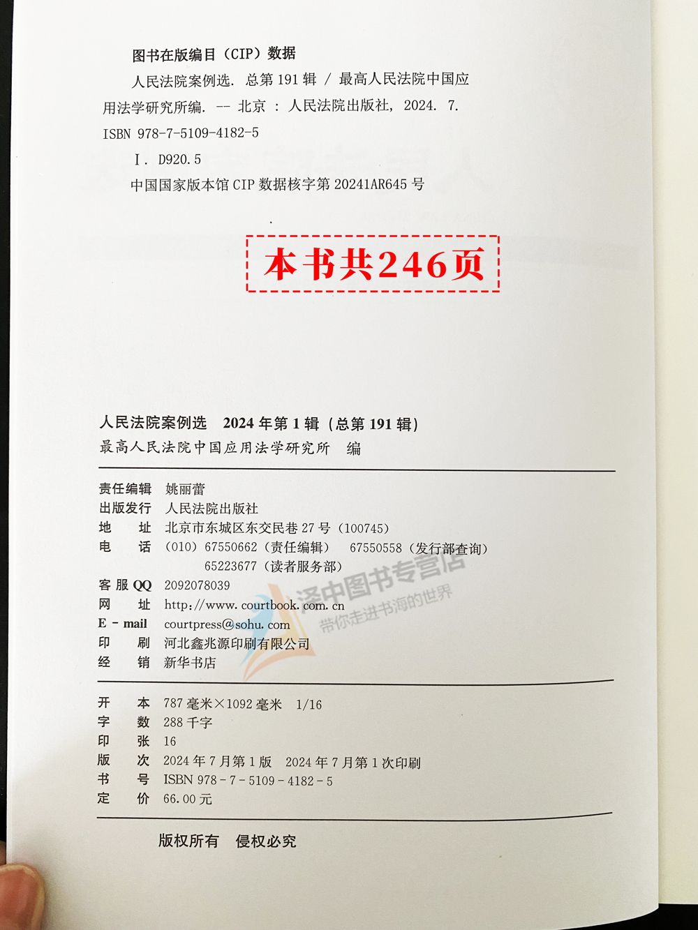 总第191辑集 司法审判案例指导典型案例 审判指导参考 正版 人民法院出版 人民法院案例选 办案法律书籍 9787510941825 2024年第1辑