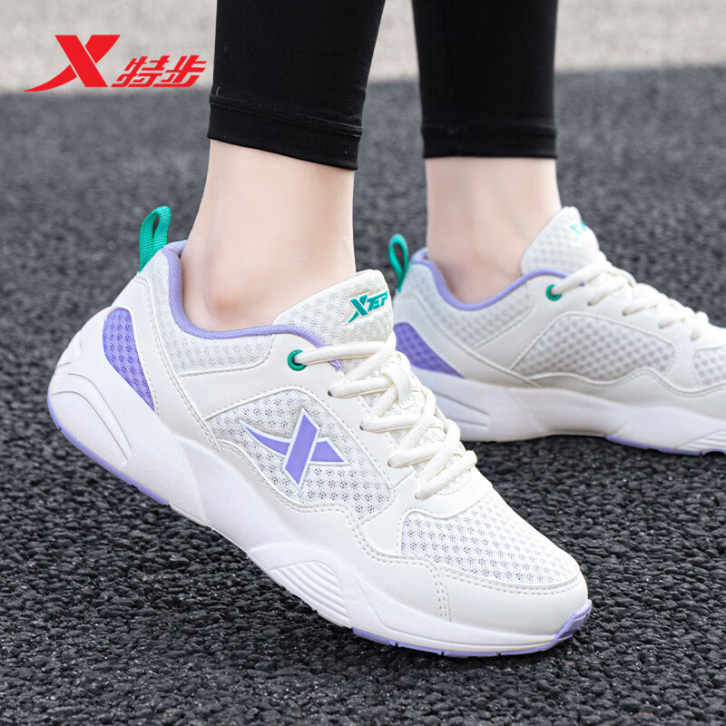 休闲鞋 子网面透气运动鞋 学生鞋 轻便休闲跑步鞋 女 子秋季 特步女鞋