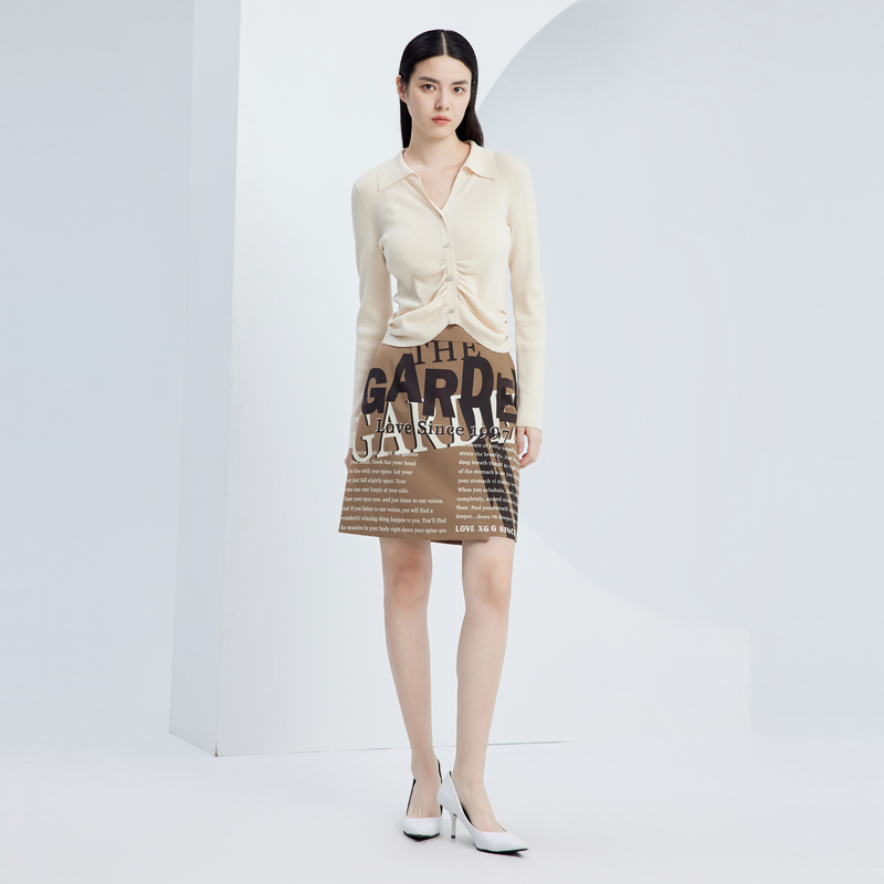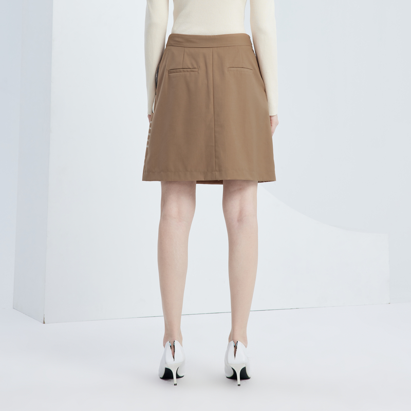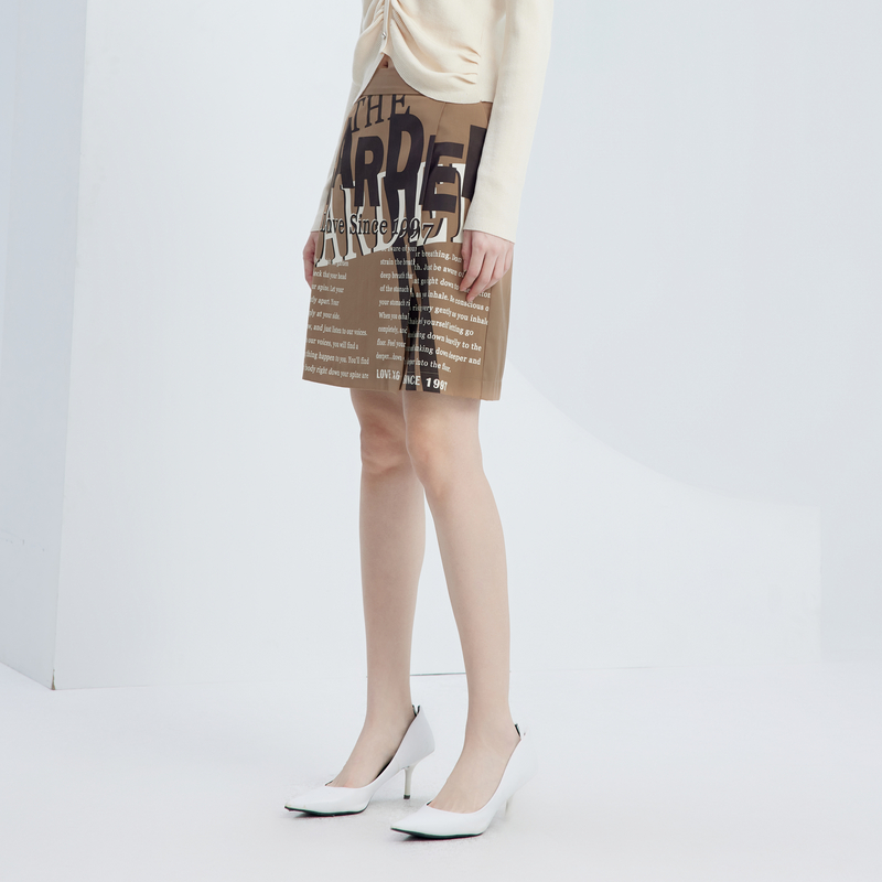 开叉设计卡其色A字短裙女 新款 XG雪歌创意字母印花半身裙时尚 秋季