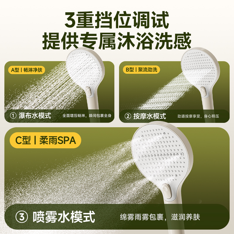 惠达卫浴增压淋浴花洒淋蓬头沐浴淋雨洗浴手持三功能花洒一键止水