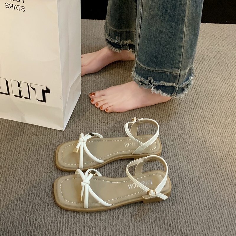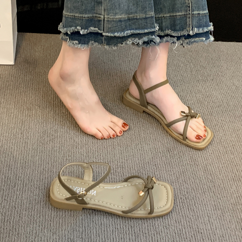 百搭仙女风细带配裙子沙滩鞋 新款 孕妇简约 女2024夏季 平底罗马凉鞋