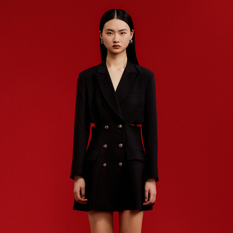 收腰绒感烫钻连衣裙显瘦千金风 法式 koradior珂莱蒂尔2025秋季 新款