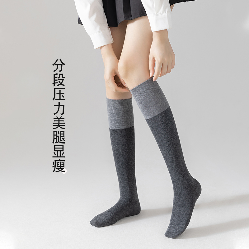 压力小腿袜女秋冬强压显瘦腿jk袜子黑色半截过膝中高筒韩版 长筒袜