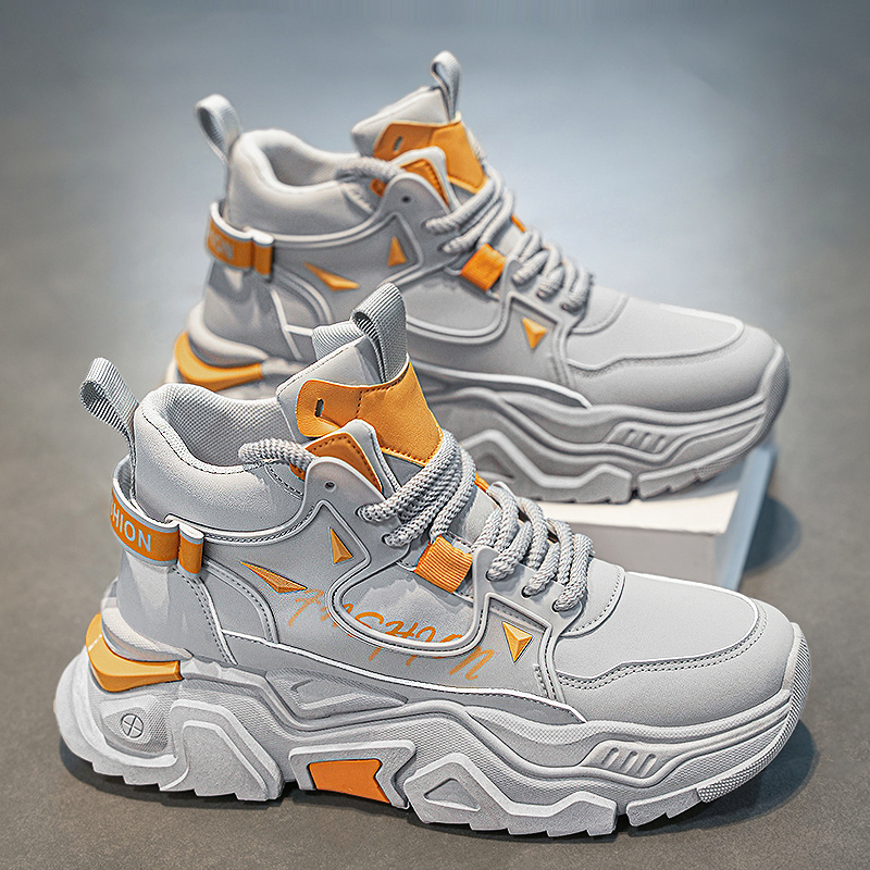 运动鞋 高帮休闲鞋 秋冬新款 子学生厚底男鞋 皮面鞋 征服鸿星尔克板鞋