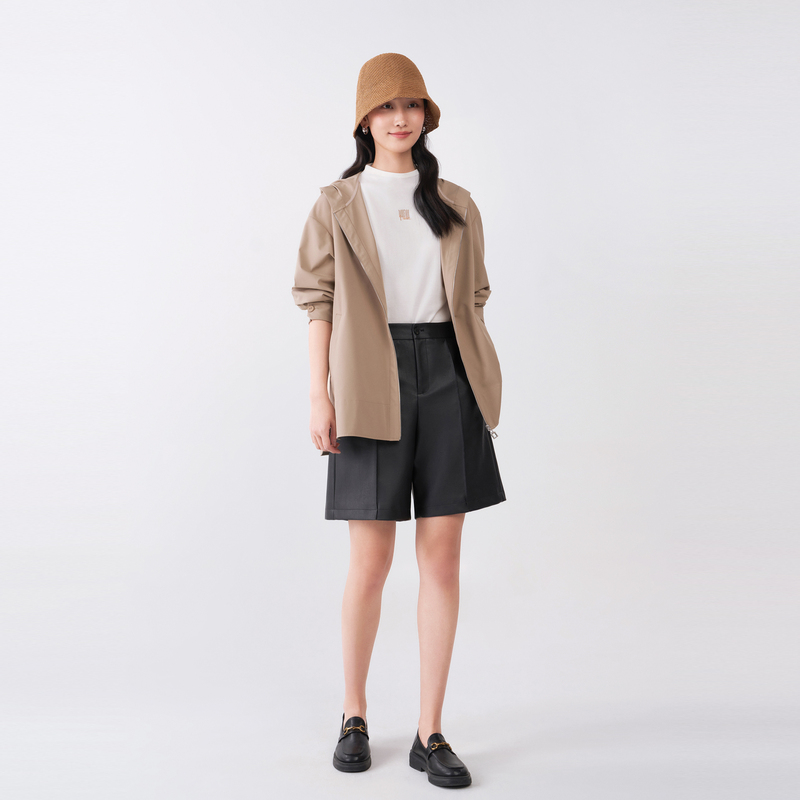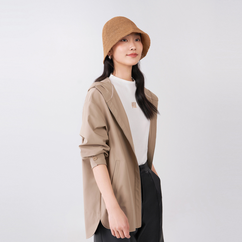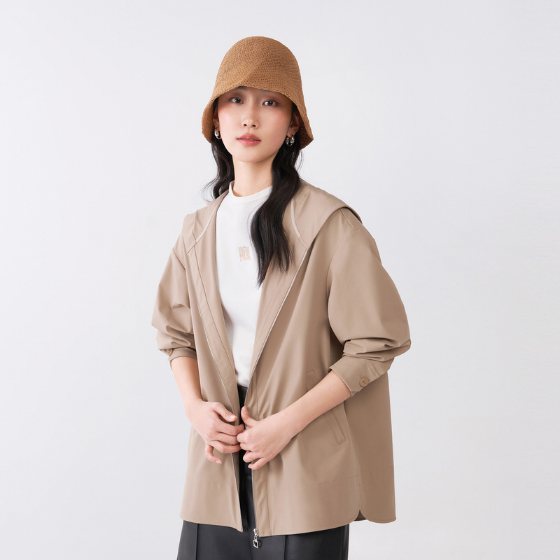 易菲卡其色宽松连帽中长款 Yifini 百搭外套风衣女秋新 专柜同款