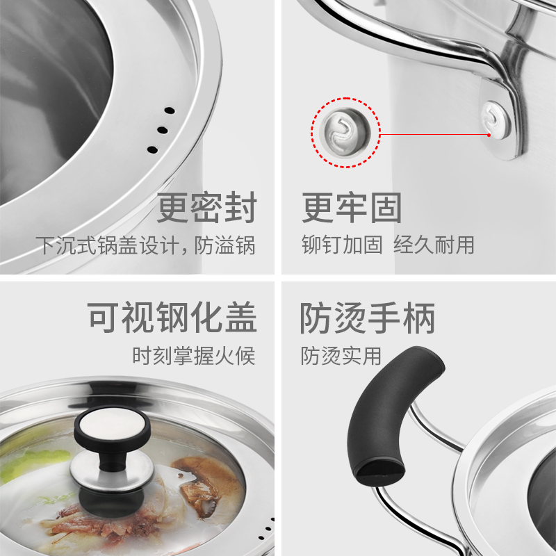 不锈钢加厚复底炖锅加厚韩国式 特高汤锅加高煲汤锅电磁炉燃气通用