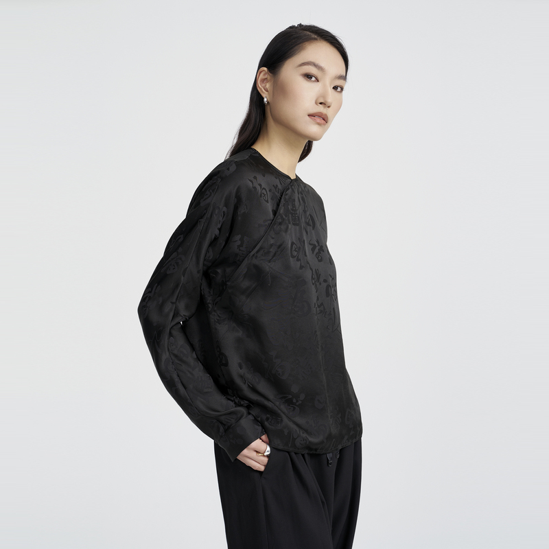 肌理感真丝衬衫 收腰修身 AUM噢姆夏季 黑色桑蚕丝上衣 预售免定