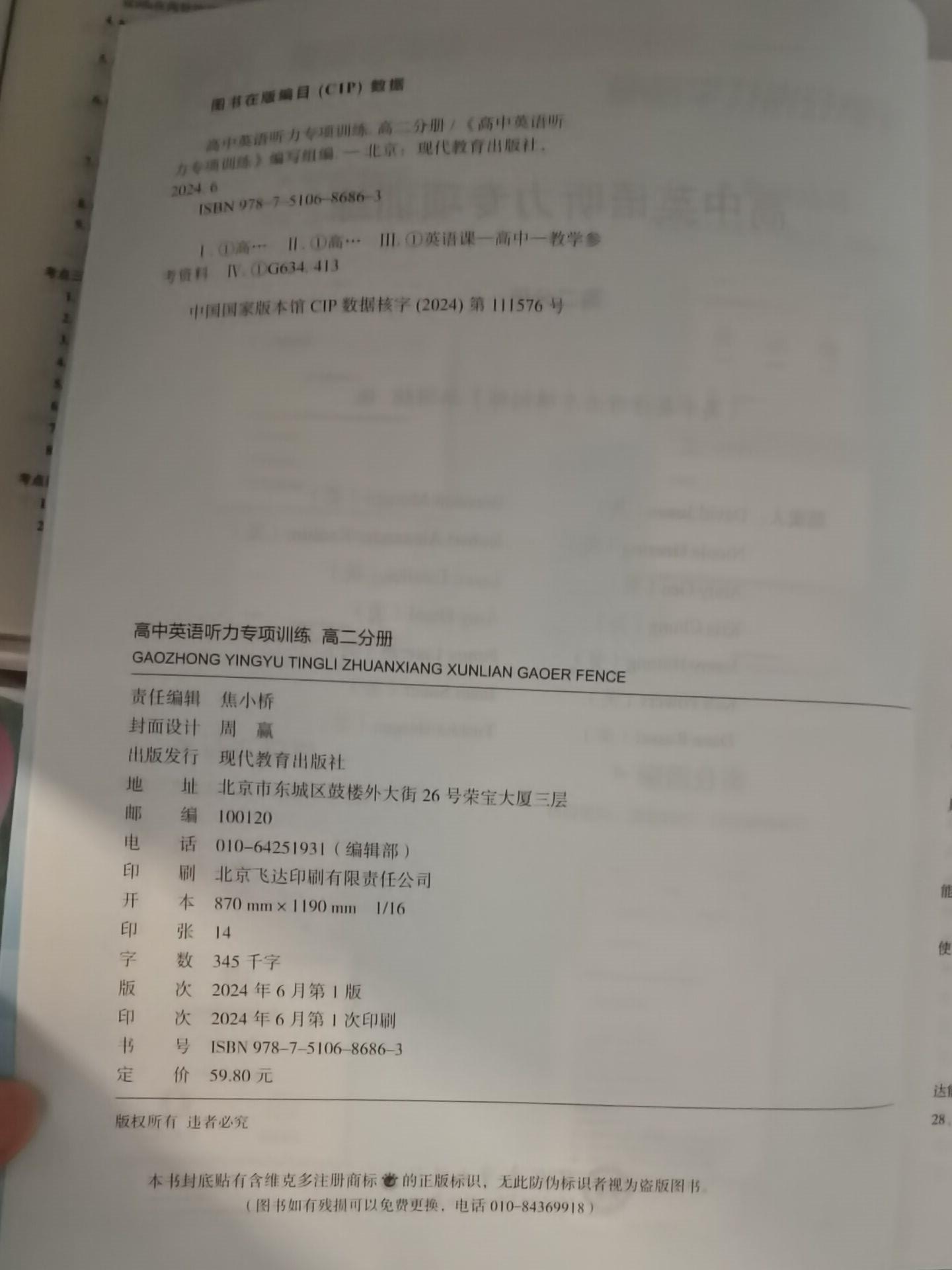 确认收货联系客服返邮费 高二分册 24版 维克多高中英语听力专项训练高一分册