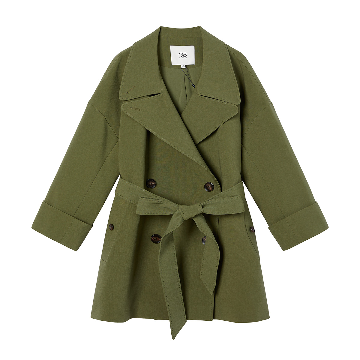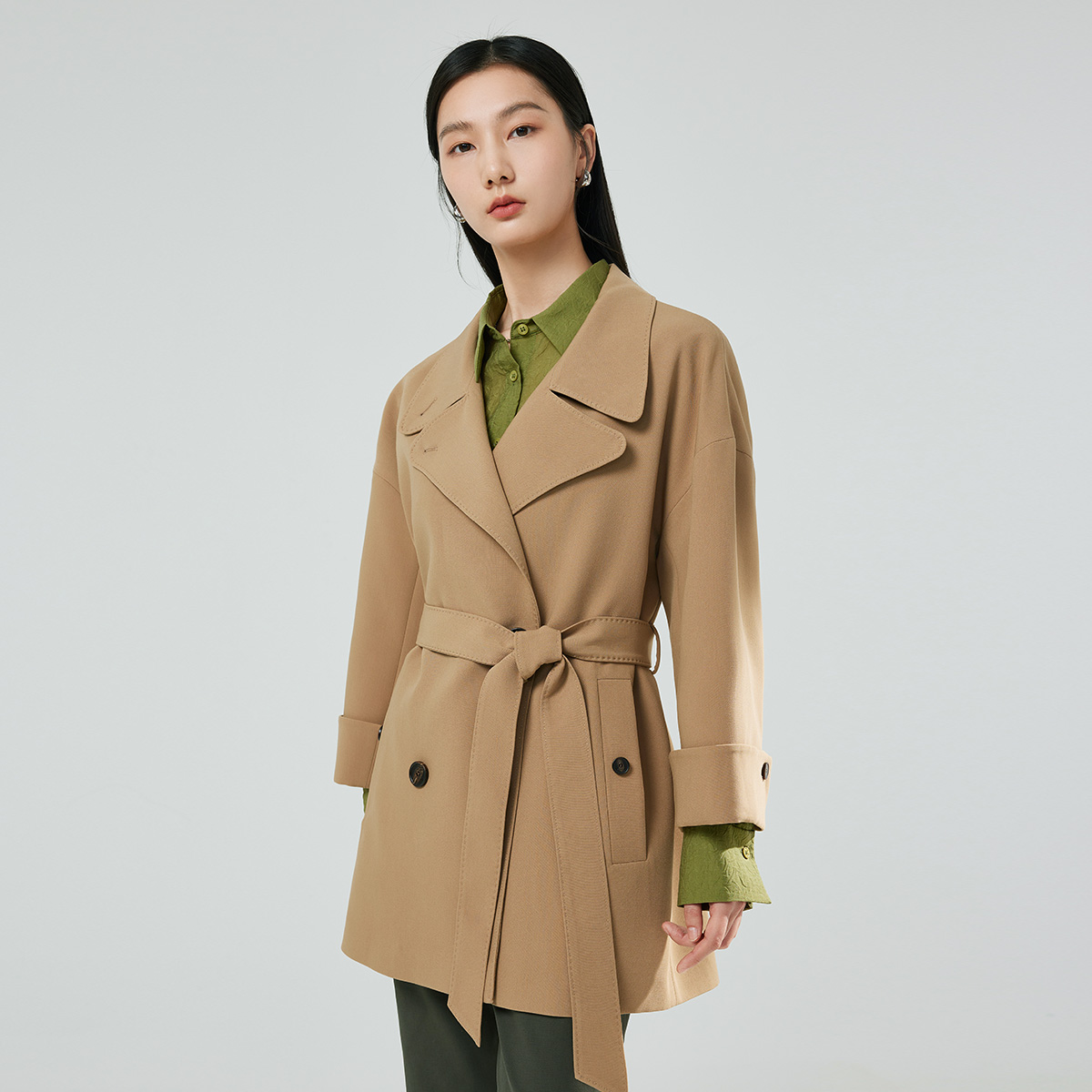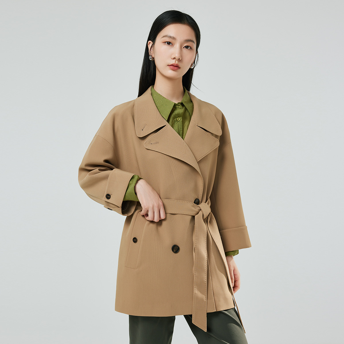 风衣 CUBIC松弛通勤全棉廓形立体翻领抽绳卡其色短款 nana同款