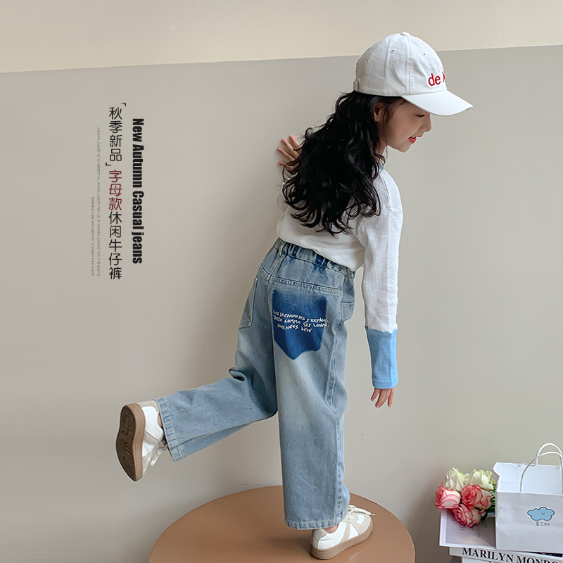 新品 春夏裤 优选 毛边牛仔长裤 子儿童阔腿裤 马克华菲女童喇叭裤