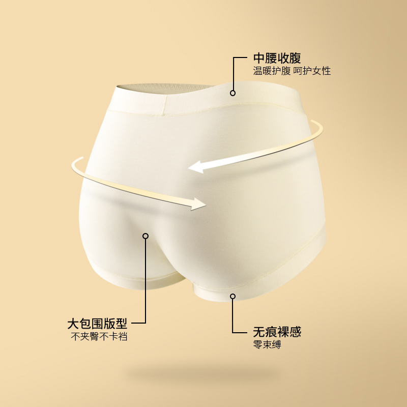 女长绒棉A类抗菌蚕丝裆无痕短裤 爱帝中腰内裤 女生2025新款 3条装