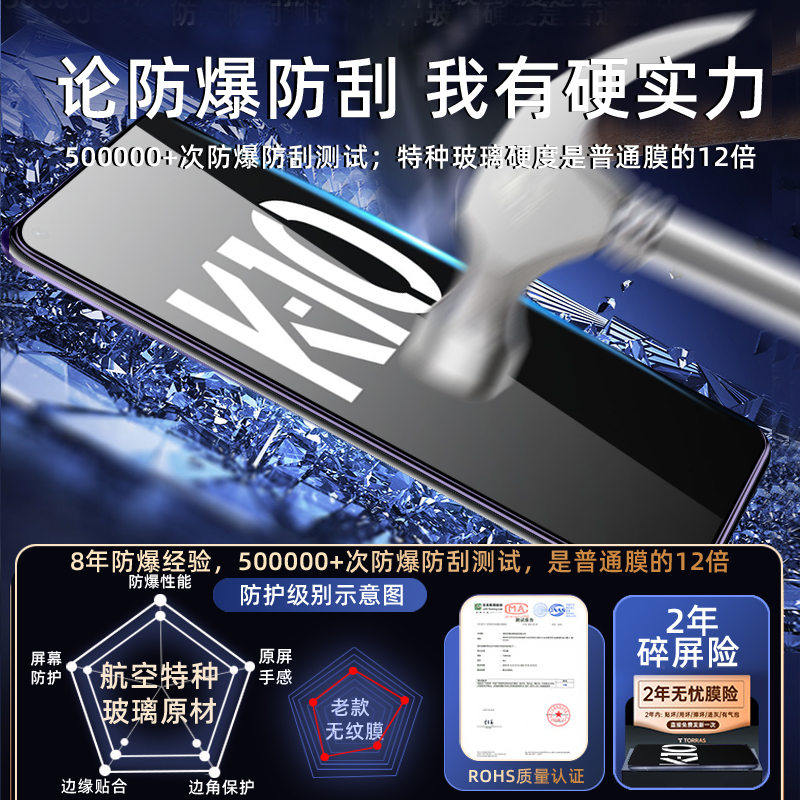 适用oppok10钢化膜k10pro手机膜k10x全屏覆盖 全包无白边0pp0k高清护眼抗蓝光防指纹玻璃防摔爆保护贴膜 新款