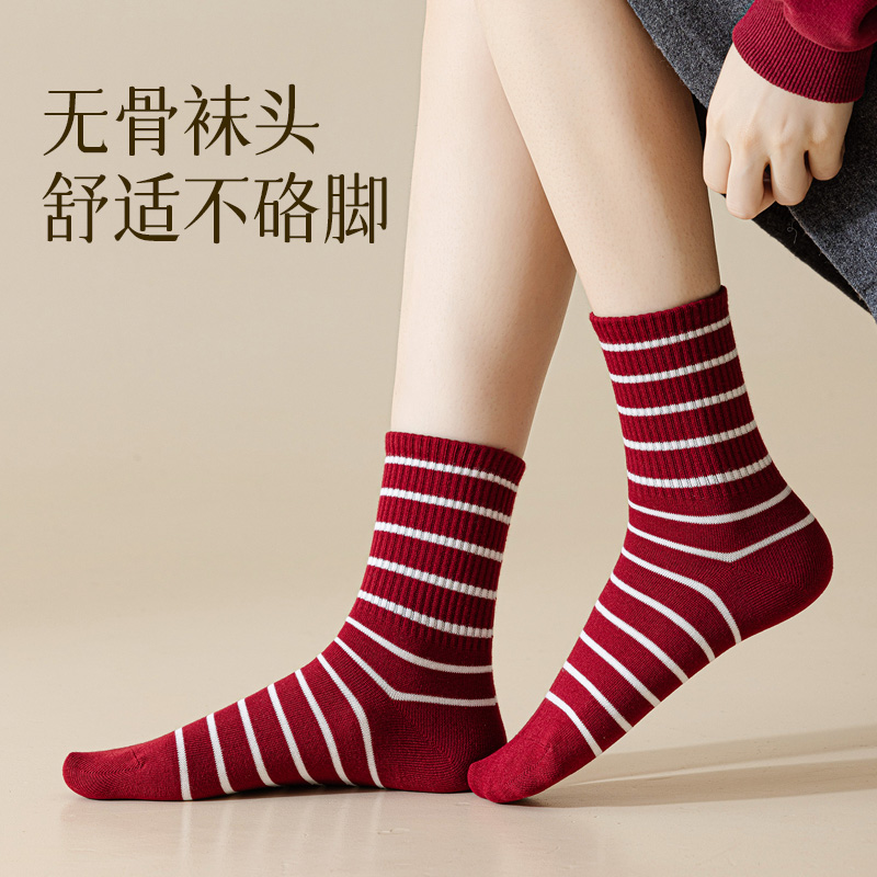 爆款 100%纯棉防臭2024新款 秋冬中筒黑色条纹长袜女 春秋款 袜子女款