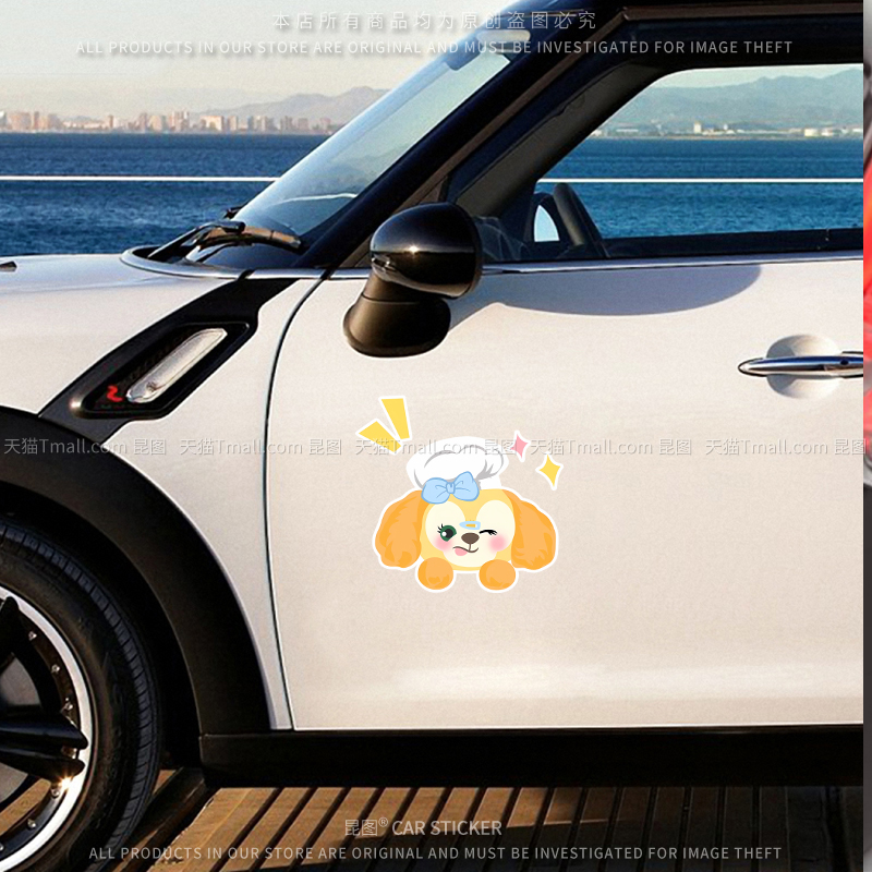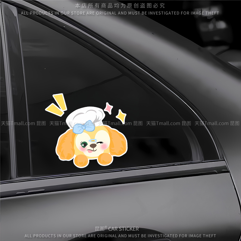 可琦安饼饼可爱小狗电动车贴汽车身贴纸改装 饰行李箱电瓶车贴防水