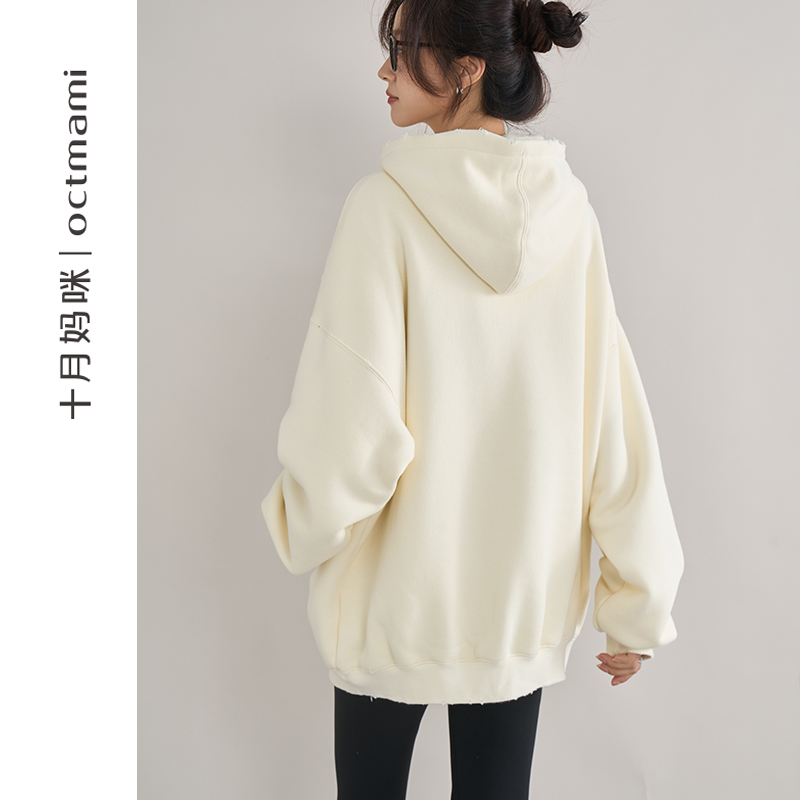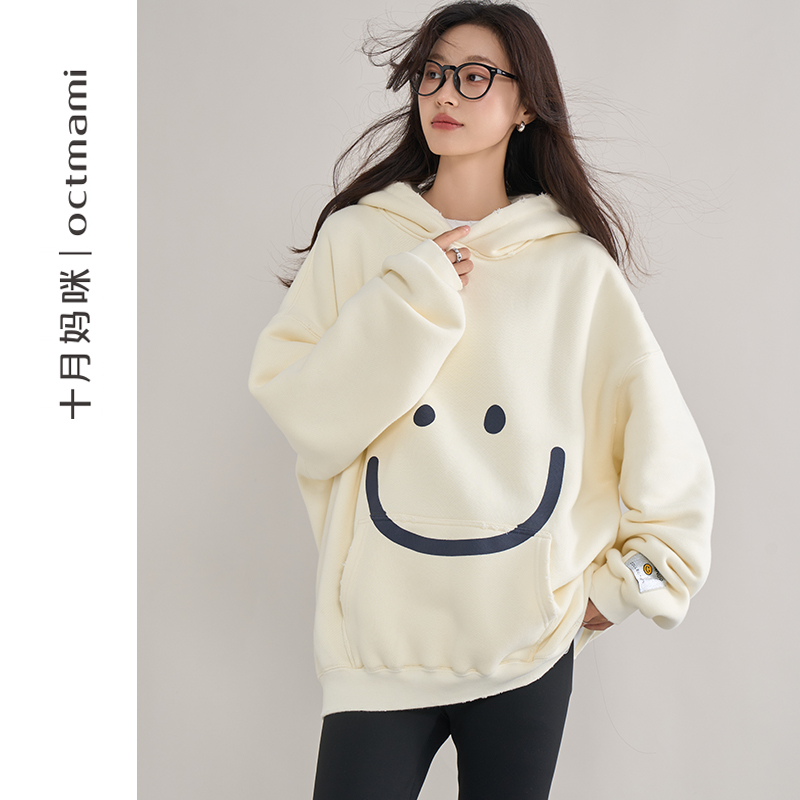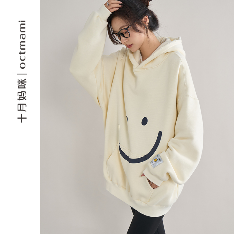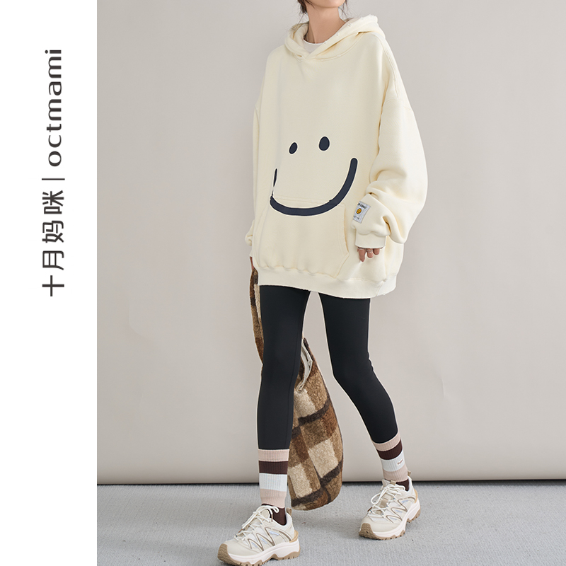 外穿加绒加厚宽松上衣冬装 十月妈咪孕妇笑脸连帽卫衣2025新款 冬季