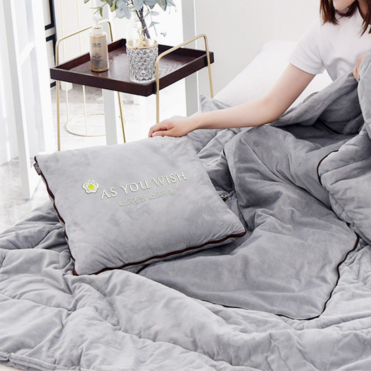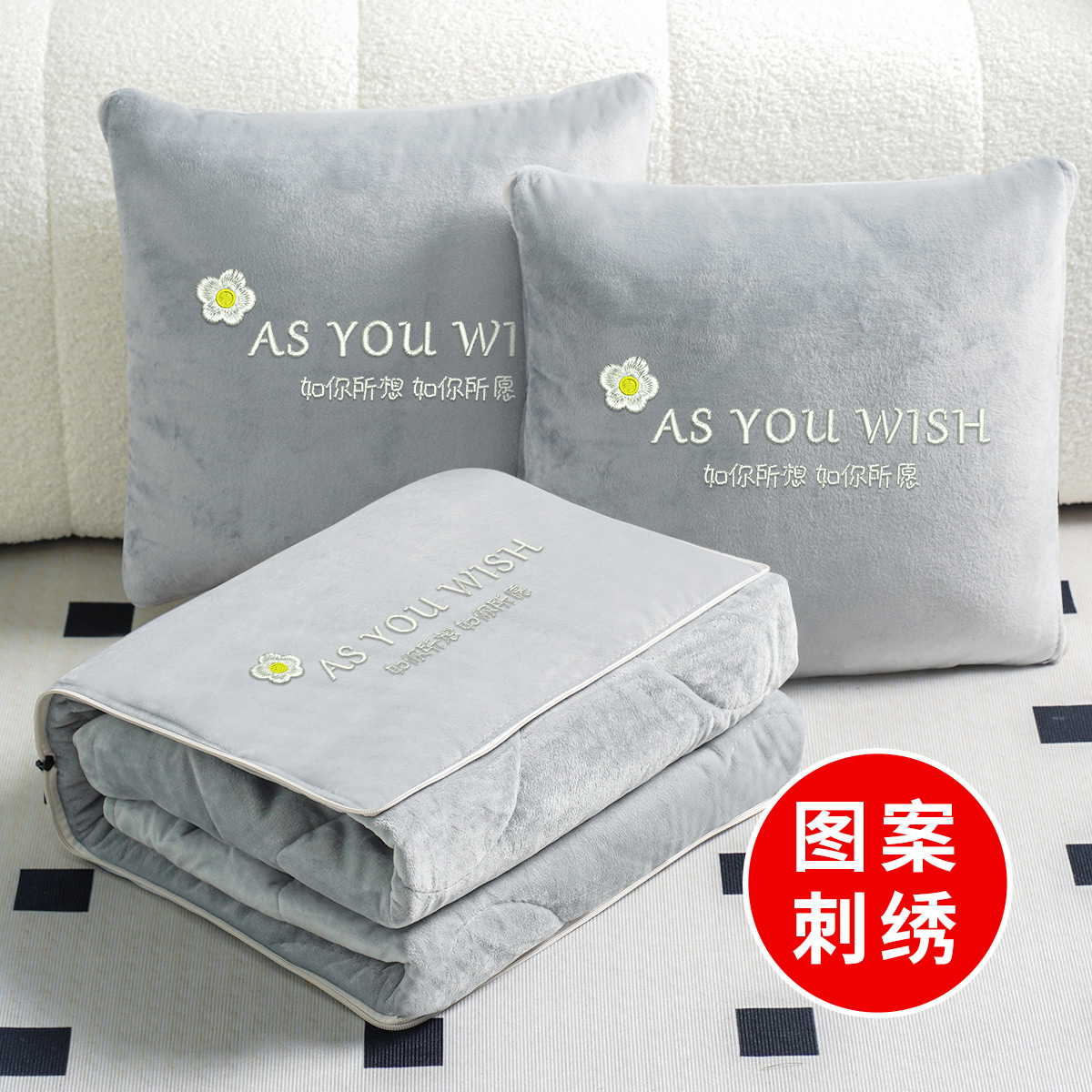冬季 珊瑚绒抱枕被子两用可定制刺绣汽车载办公室午睡靠枕空调被