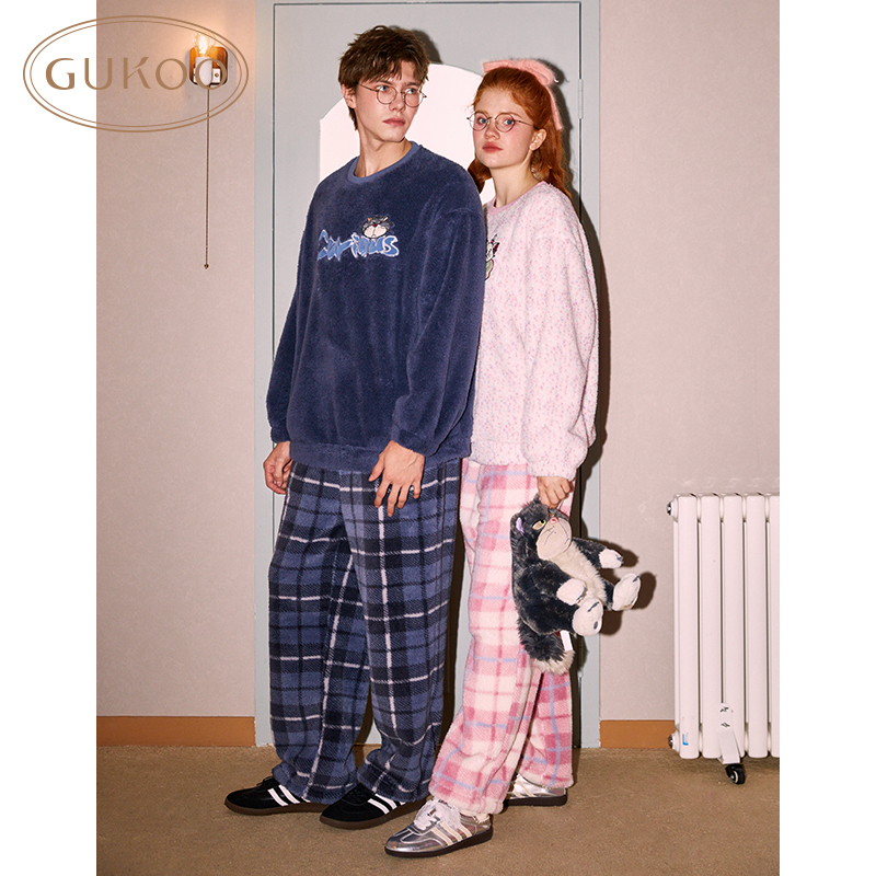 女款 家居服套装 加厚大码 秋冬款 法兰绒男士 芬腾珊瑚绒情侣睡衣冬季