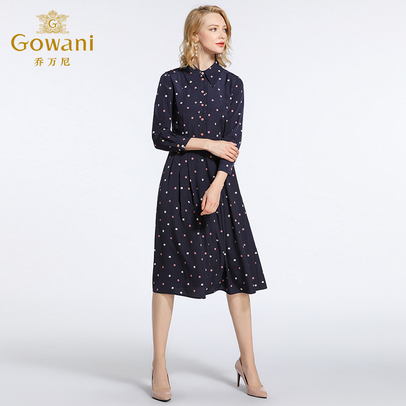 罗衣轻商务深蓝色修身 直筒裙11686 连衣裙冬高级设计感假两件衬衫