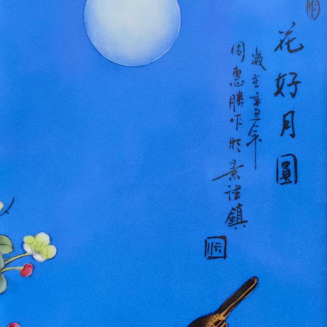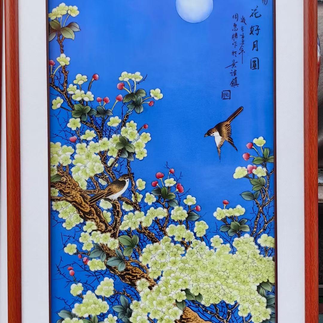 景德镇手工绘高工周惠胜老师手工绘画瓷板画花好月圆粉彩瓷板画