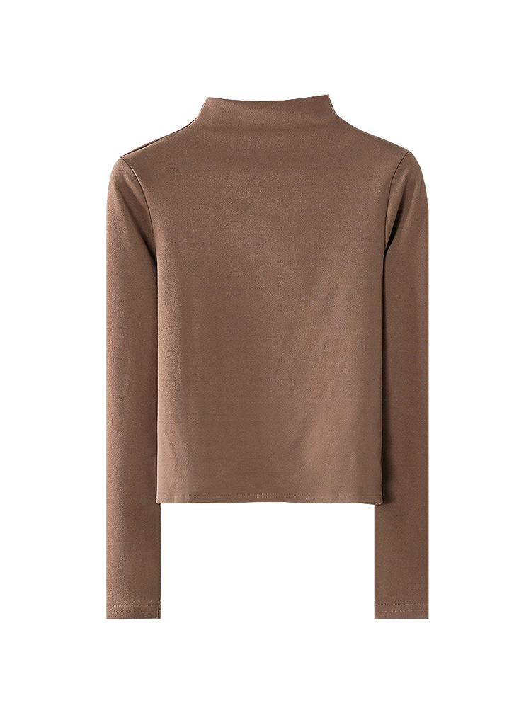 纯欲纯色高腰德绒保暖长袖 短款 体恤上衣女打底 半高领修身 秋冬新款