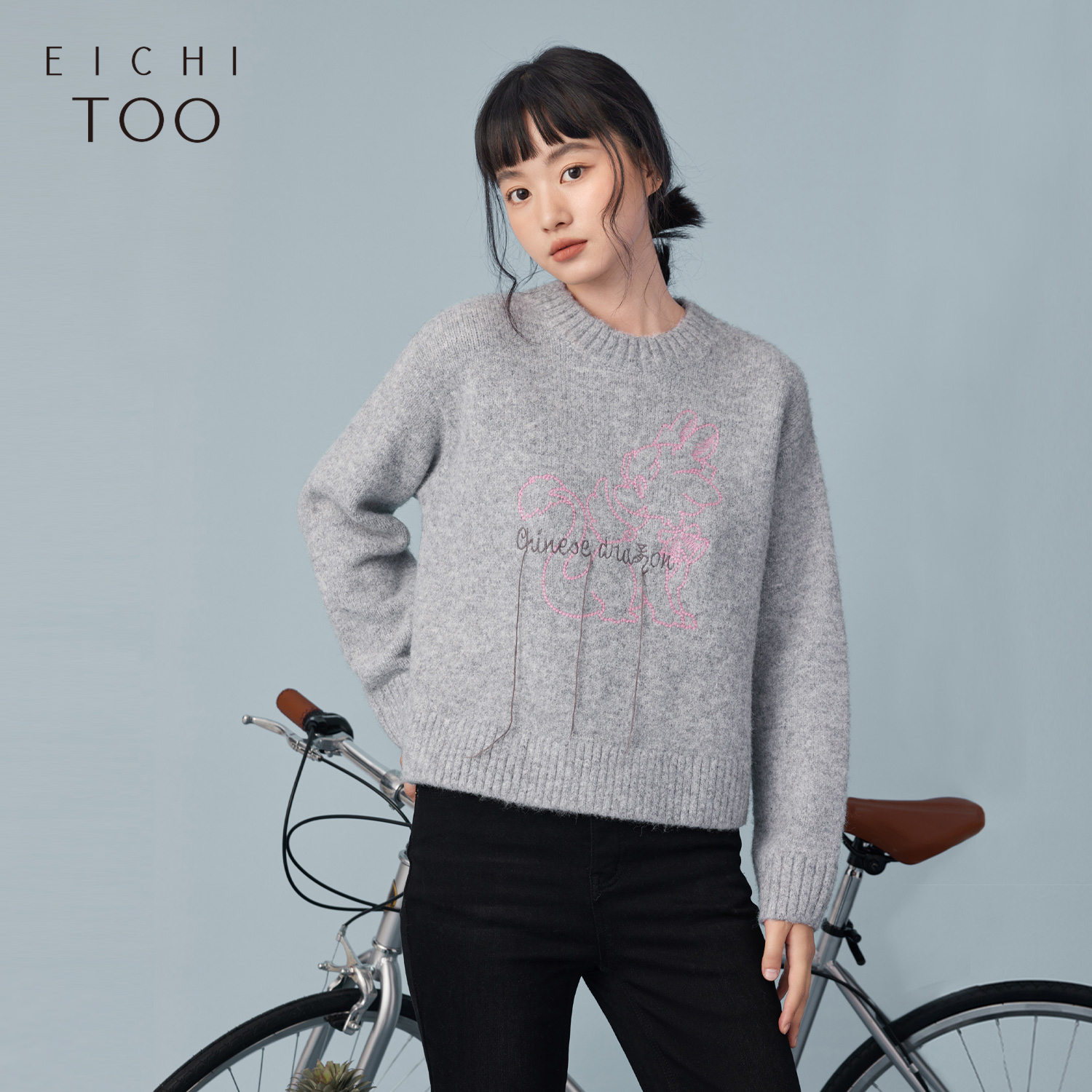 毛衣 针织衫 爱居兔冬季 独特绣花温柔气质长袖