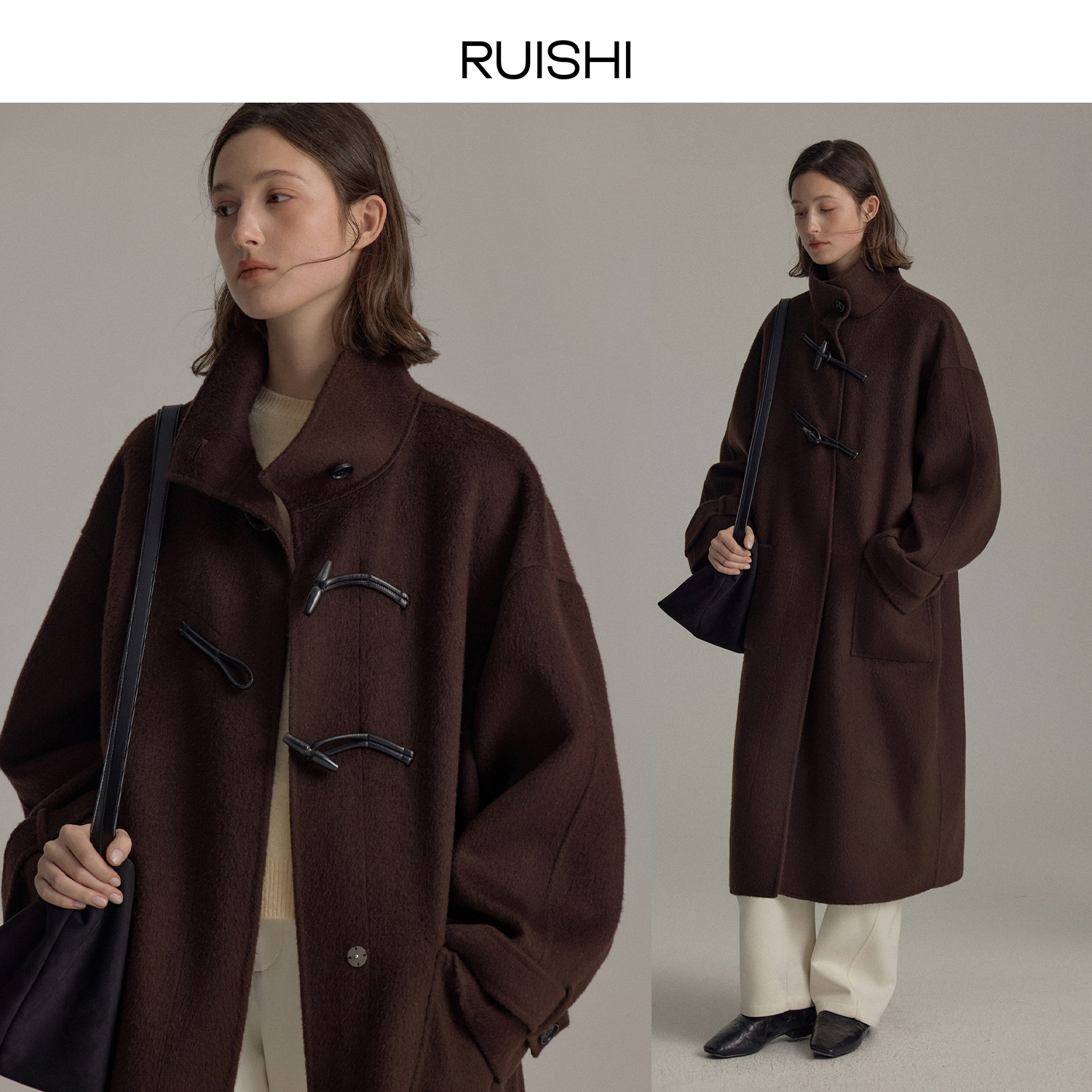 RUISHI芮时 重磅驼绒桑蚕丝羊毛慵懒两穿领毛呢大衣女秋冬外套女
