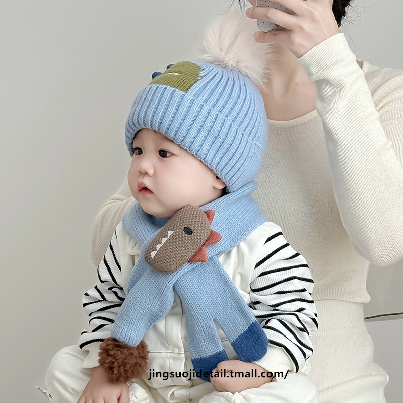 宝宝帽子围巾套装 婴儿可爱超萌护耳帽男宝女宝儿童套头帽 秋冬新款