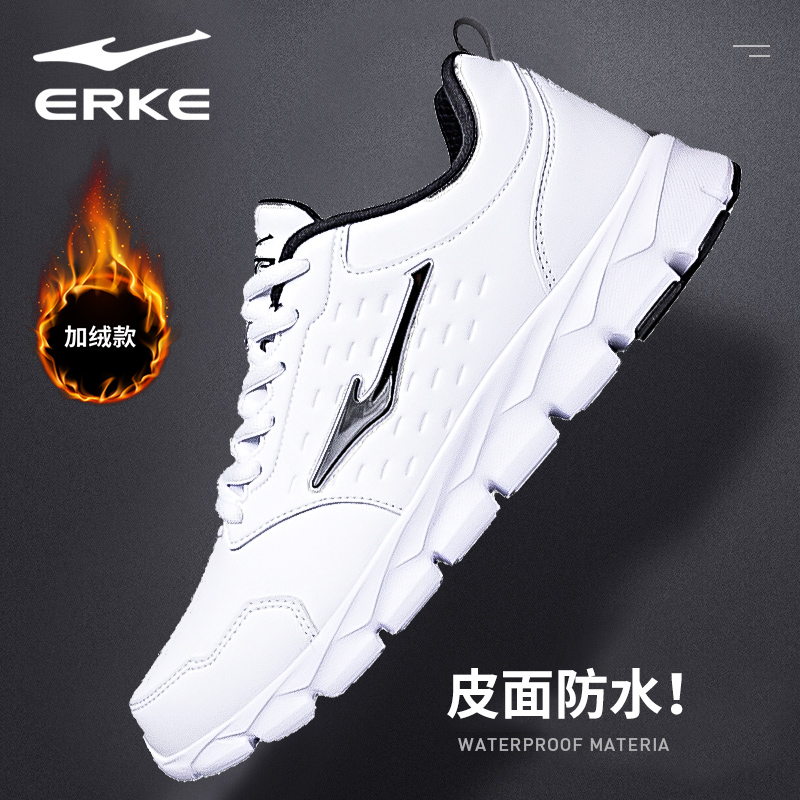 秋季 棉鞋 新款 保暖轻便跑步鞋 加绒加厚皮面防水运动鞋 鸿星尔克男鞋