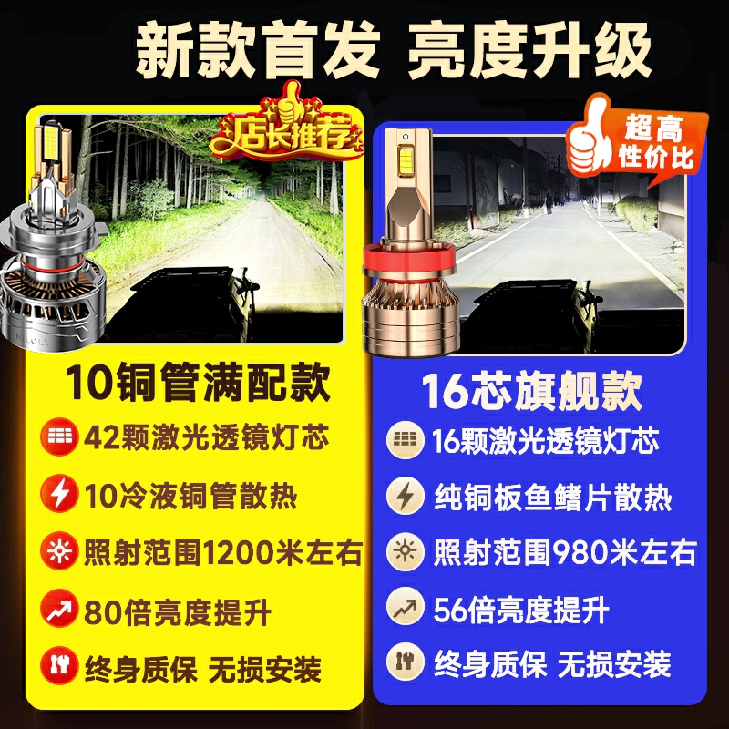 汽车激光LED大灯泡强光车灯9005超亮h4远光近光一体h7透镜改装 h11