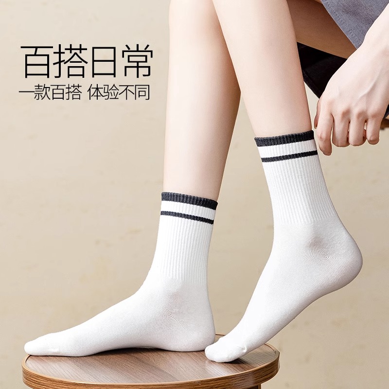 诸暨袜子女士中筒袜纯棉运动袜秋冬款 条纹百搭日系纯棉抗起球长袜