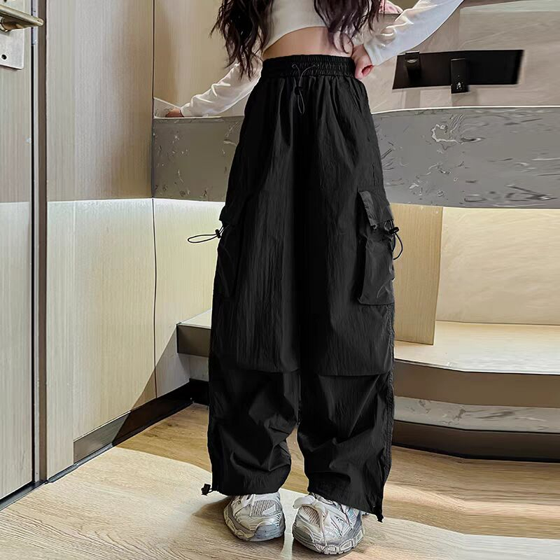 中大童宽松阔腿休闲裤 男女童黑色工装 儿童速干伞兵裤 春秋薄款 子 裤