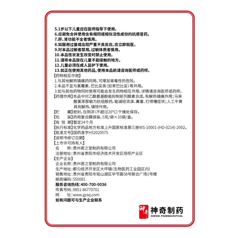 神奇娃娃小儿氨酚黄那敏颗粒感冒发热头痛四肢酸痛流鼻涕鼻塞咽痛