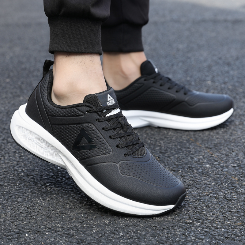 减震软底黑色运动鞋 匹克态极跑步鞋 皮面防水防滑跑鞋 新款 男秋冬季