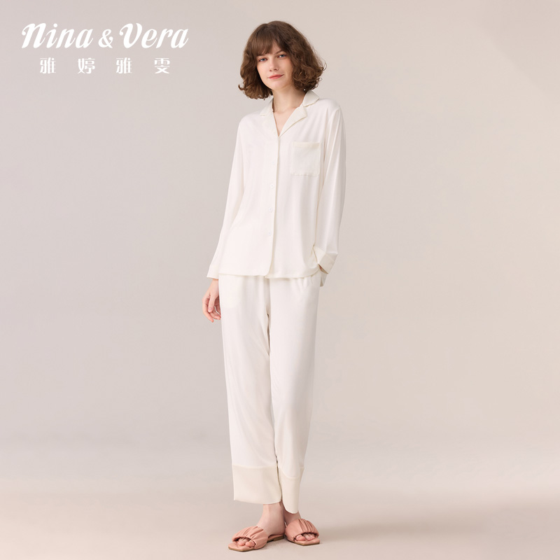 长袖 简约舒适家居服套装 长裤 夏季 可外穿 2025新款 纯棉睡衣女春秋季