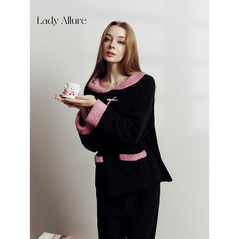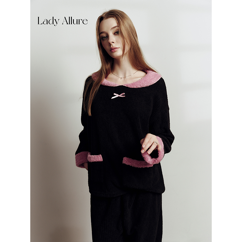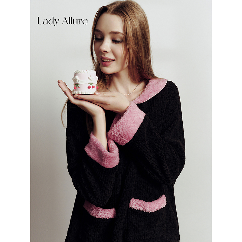 可外穿珊瑚绒家居服女抗静电冬季 红豆居家女士羊羔绒睡衣套装 开衫