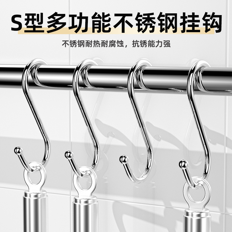 不锈钢S型挂钩免打孔多功能吊钩厨房勺子铲子304晒腊肉烤鸭挂勾子