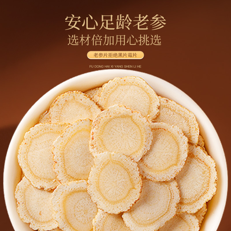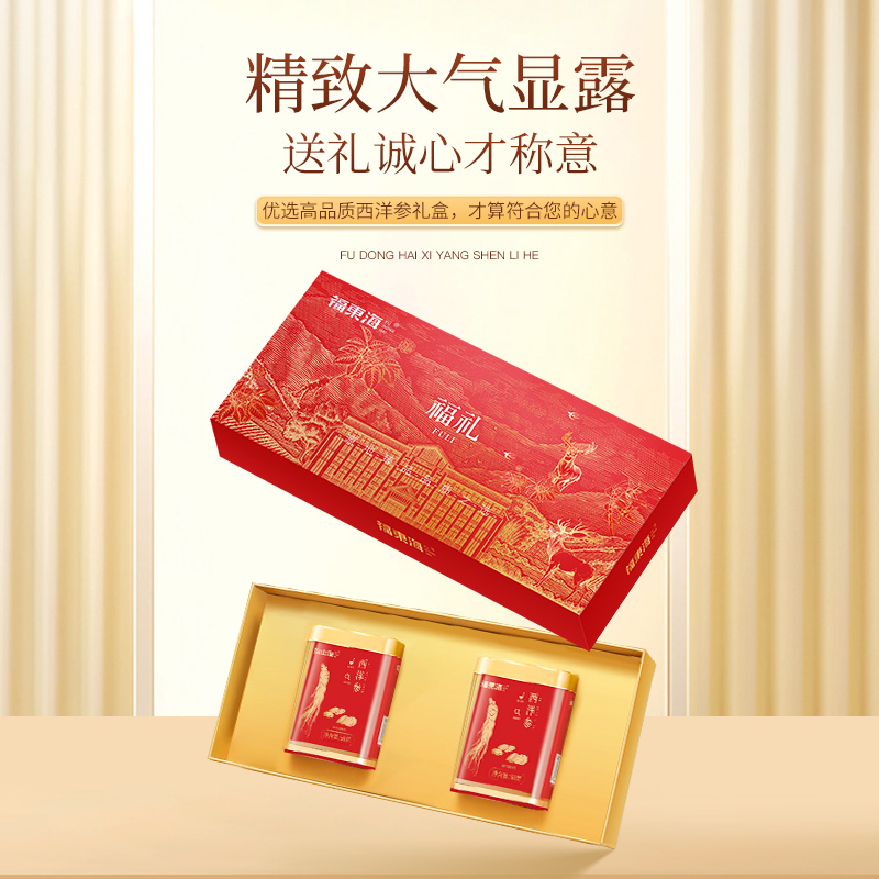 福东海西洋参礼盒 长白山花旗参含片人参片茶送长辈 1.4CM大片