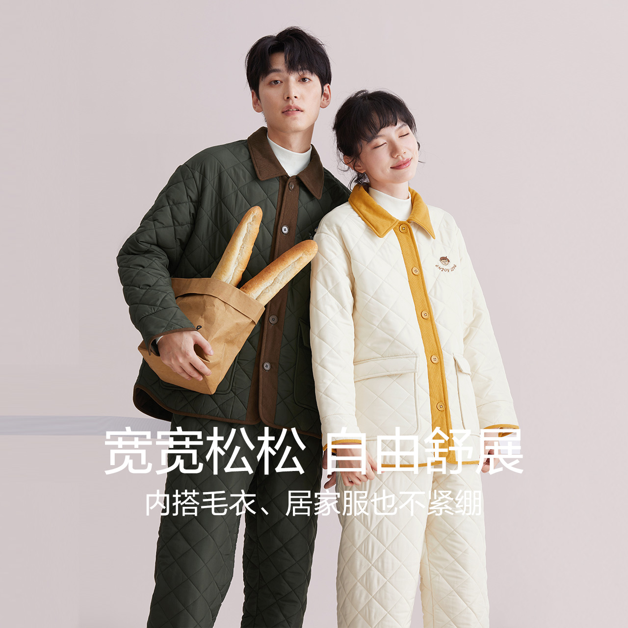 保暖防寒情侣家居服顶呱呱 睡衣套装 顶瓜瓜半边绒男士 女士加绒款