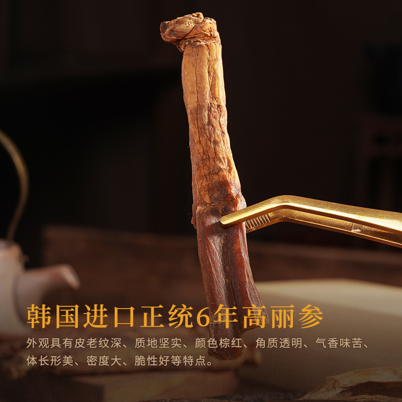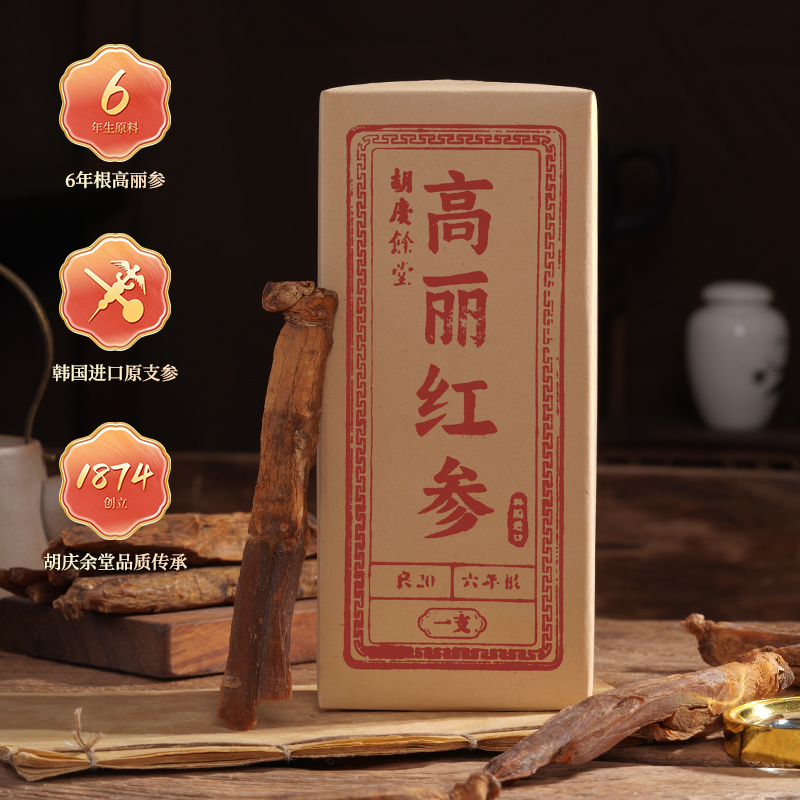 胡庆余堂旗舰店韩国进口高丽参6年根良参20红参中药材送礼人参