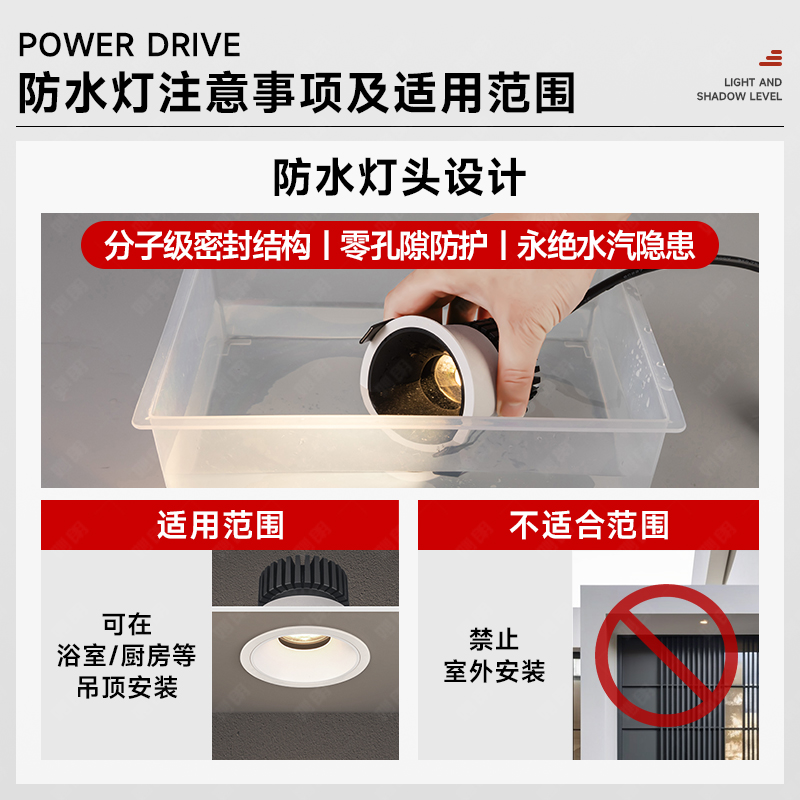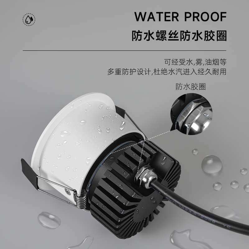 智能防水射灯嵌入式 天花灯厨房防油烟卫生间淋浴房防潮雾防眩筒灯