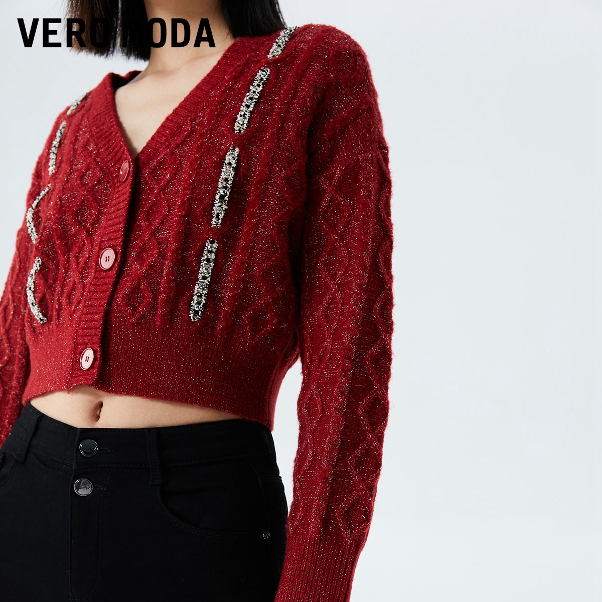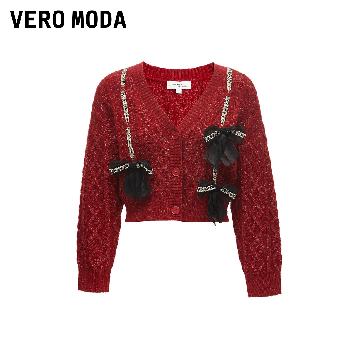 外套 女秋冬清仓宽松v领绞花气质短款 Vero Moda奥莱毛衣针织开衫