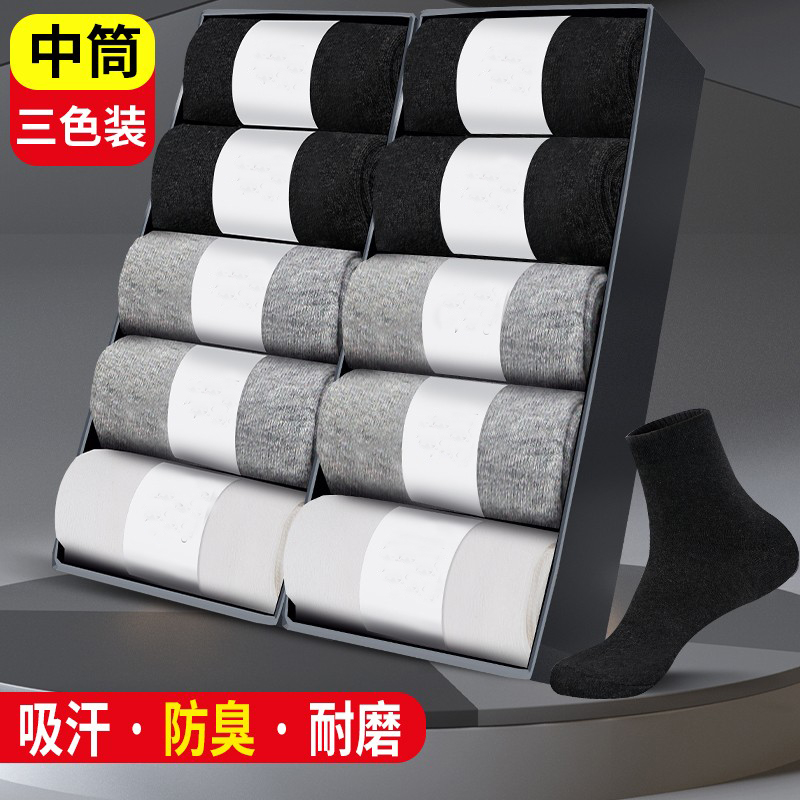 诸暨袜子男春秋季 纯色棉袜白色中筒袜 防臭短袜吸汗透气运动袜男士