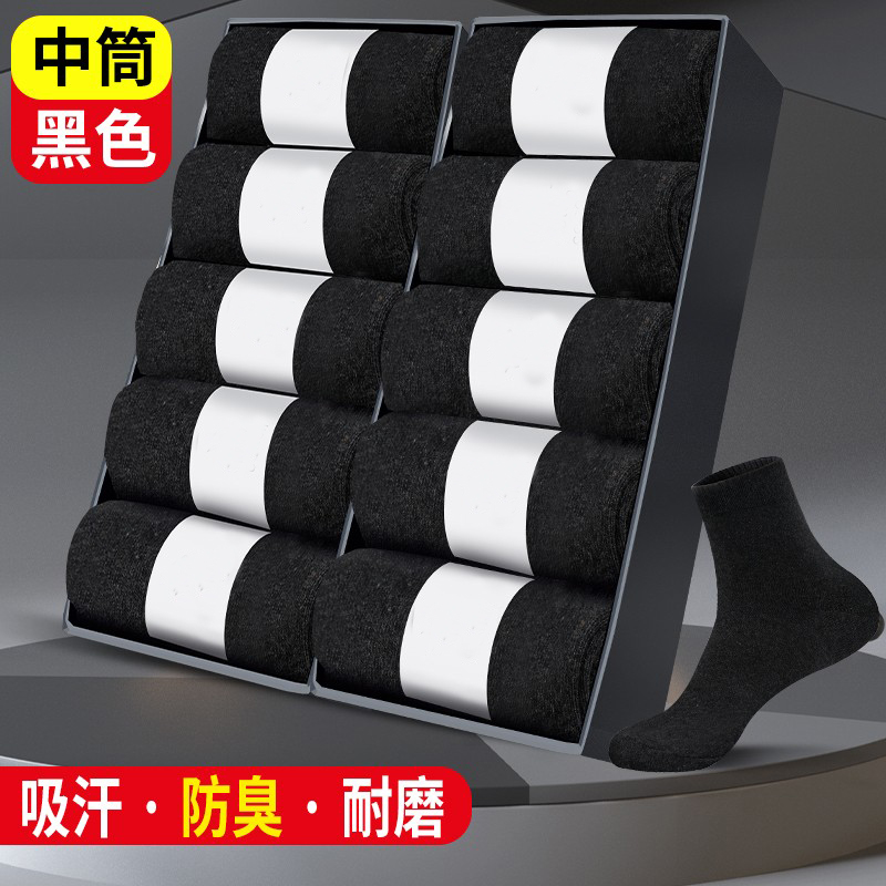 薄款 运动袜子防臭吸汗透气中筒袜春秋季 商务百搭潮袜子 男士 20双装