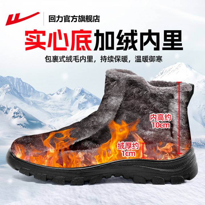 雪地靴女款 加绒保暖中老年爸爸妈妈鞋 冬季 回力官方旗舰店老人棉鞋