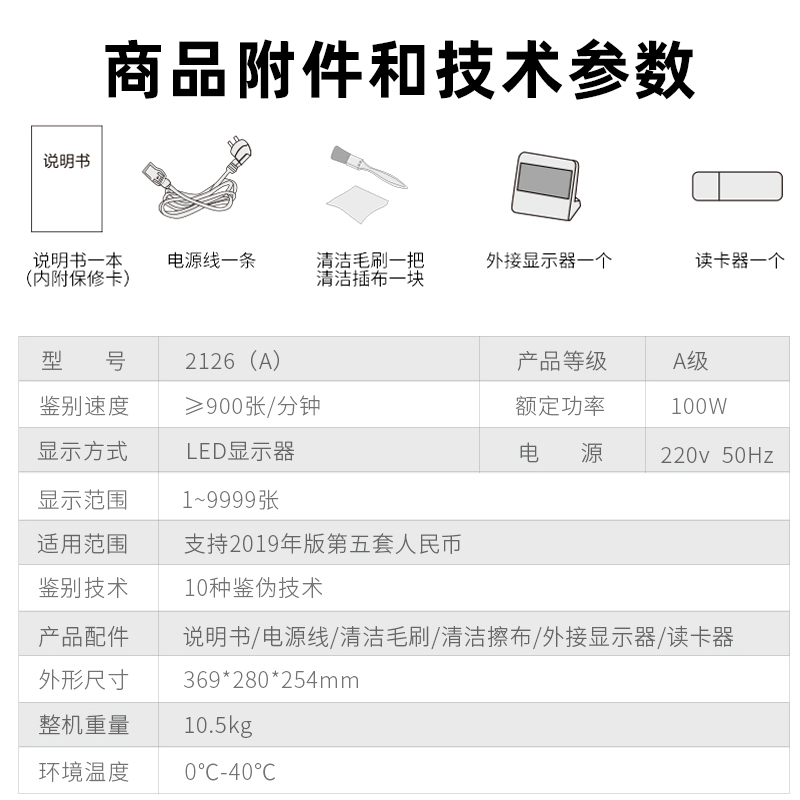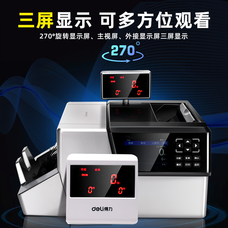 人民币三屏显示新国标商用验钞机 新到货得力A类点钞机2126银行用智能数钱机新版 全国联保 支持2023新币